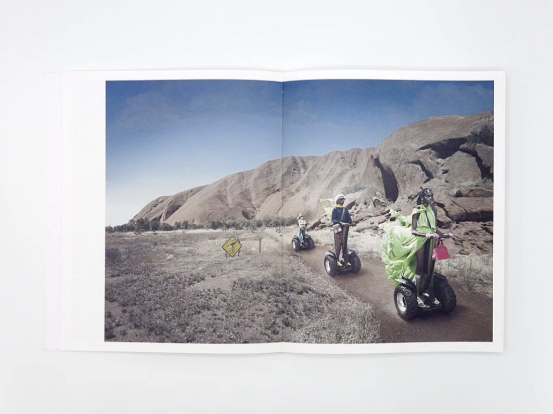 The resulting images are quietly virtuosic. Soft, painterly tones and fastidious compositional details provide a filmic backdrop for historical pathos, speculative futures, imaginary leaps, and unrestrained what-ifs. They veer between the sumptuous and the stark, the historical and the speculative, the political and the playful.